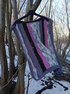 I dag var det lunt i vejret -11 grader og mellem regnbygerne, sneg jeg mig ud med kaffen i termokrus og strikketøjet. (Lidt chokolade,det er trods alt ferie😉)Jeg kunne også glædes over, at jeg til morgen fik trævlet det stykke op,som jeg ikke synes passede til farverne alligevel.(altså det der med at strikke i (nat) lampens skær i restegarn,som så skiftede nuance, uden jeg lagde mærke til det- var ikke så smart,når man som mig hader at trævle op.)